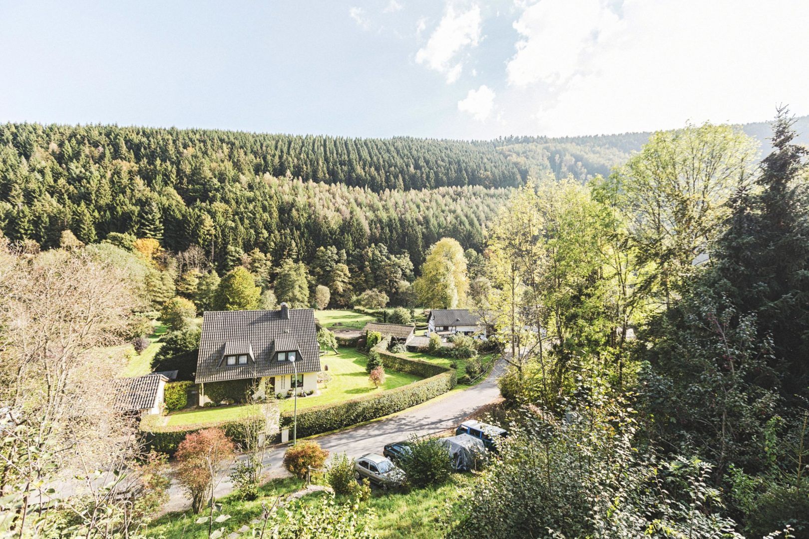 Unsere Ferienwohnungen befinden sich in idyllischer Lage im Naturpark Nordeifel, umgeben von weitläufigen Wäldern und sanften Hügeln. Die ruhige Umgebung bietet die perfekte Kulisse für erholsame Urlaubstage.